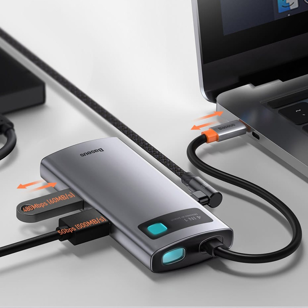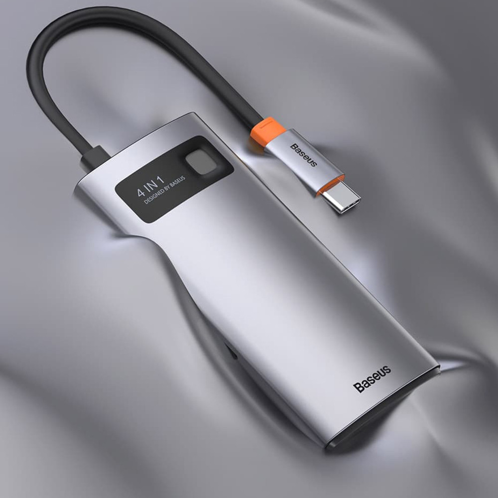 Baseus - Docking Station Metal Glam (CAHUB-CY0G) - Type-C to 2x USB, Type-C, HDMI, 4K@30 Hz, PD100W - Grey