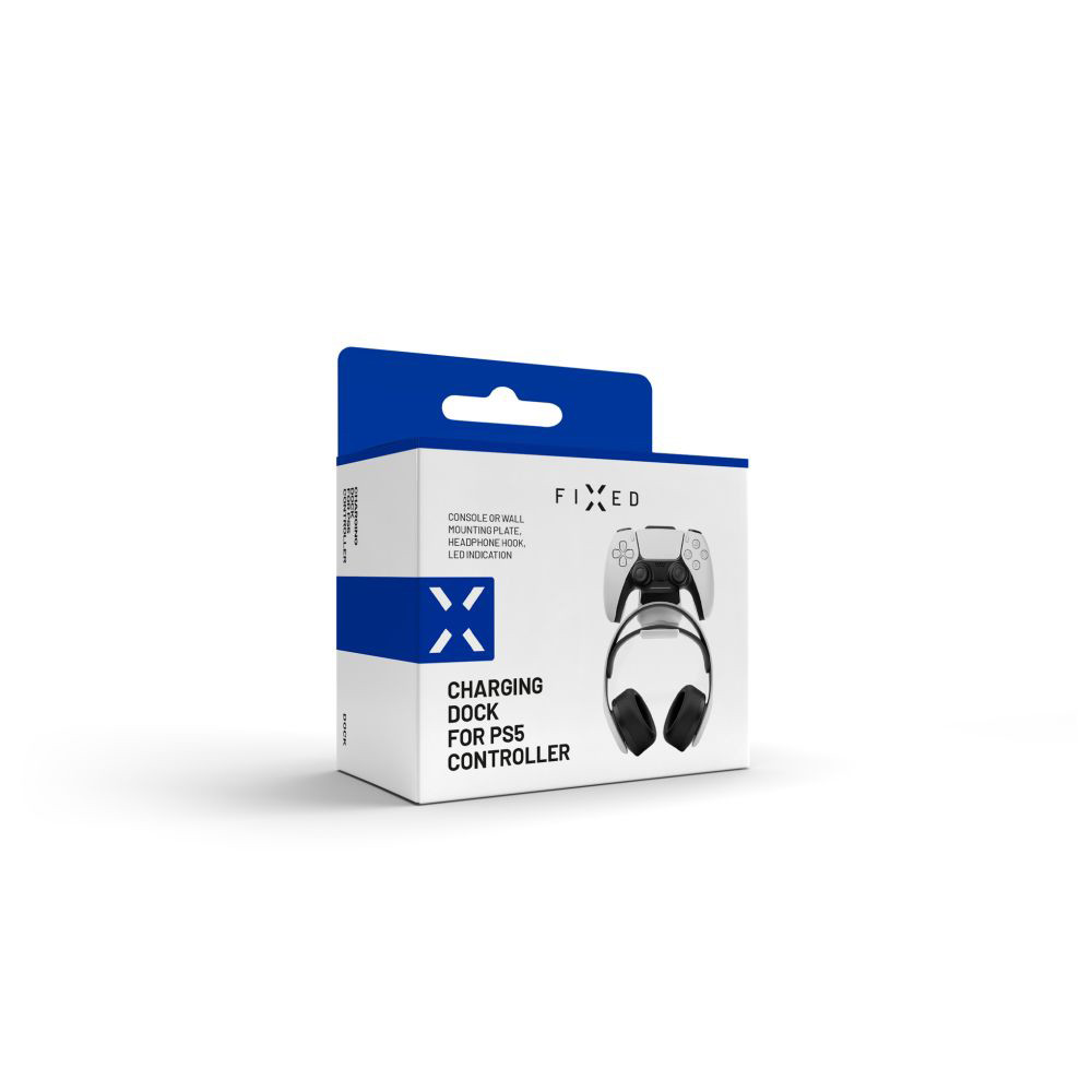 Fixed - Falra szerelhető állvány PS5 kontrollerekhez és fejhallgatókhoz, töltődokkal, LED - Fekete - Fixed