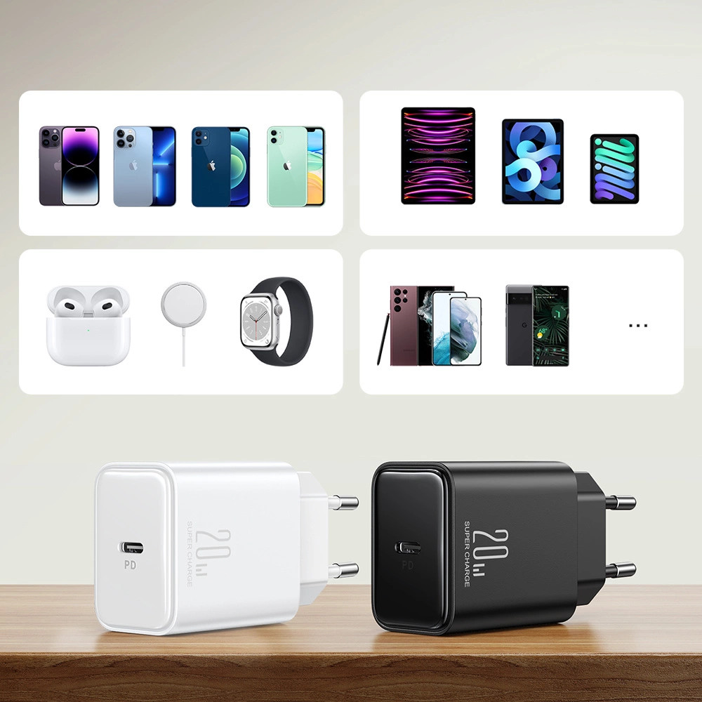 A Joyroom JR-TCF06 nemcsak biztonságos, hanem megbízható 20 W-os USB-C töltő a mindennapokra. Megóvja készülékedet a lehetséges veszélyektől (például túltöltés, túlmelegedés vagy rövidzárlat). Bármilyen helyzetben számíthatsz rá. Akár 20 W teljesítménnyel gyorsabban feltölti eszközeidet. A töltő univerzális – ezt az USB-C port biztosítja.