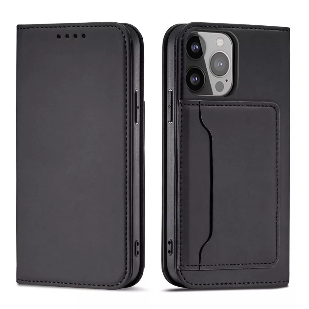 Mágneses Kinyitható Tok pénztárcatartóval iPhone 14 - Fekete