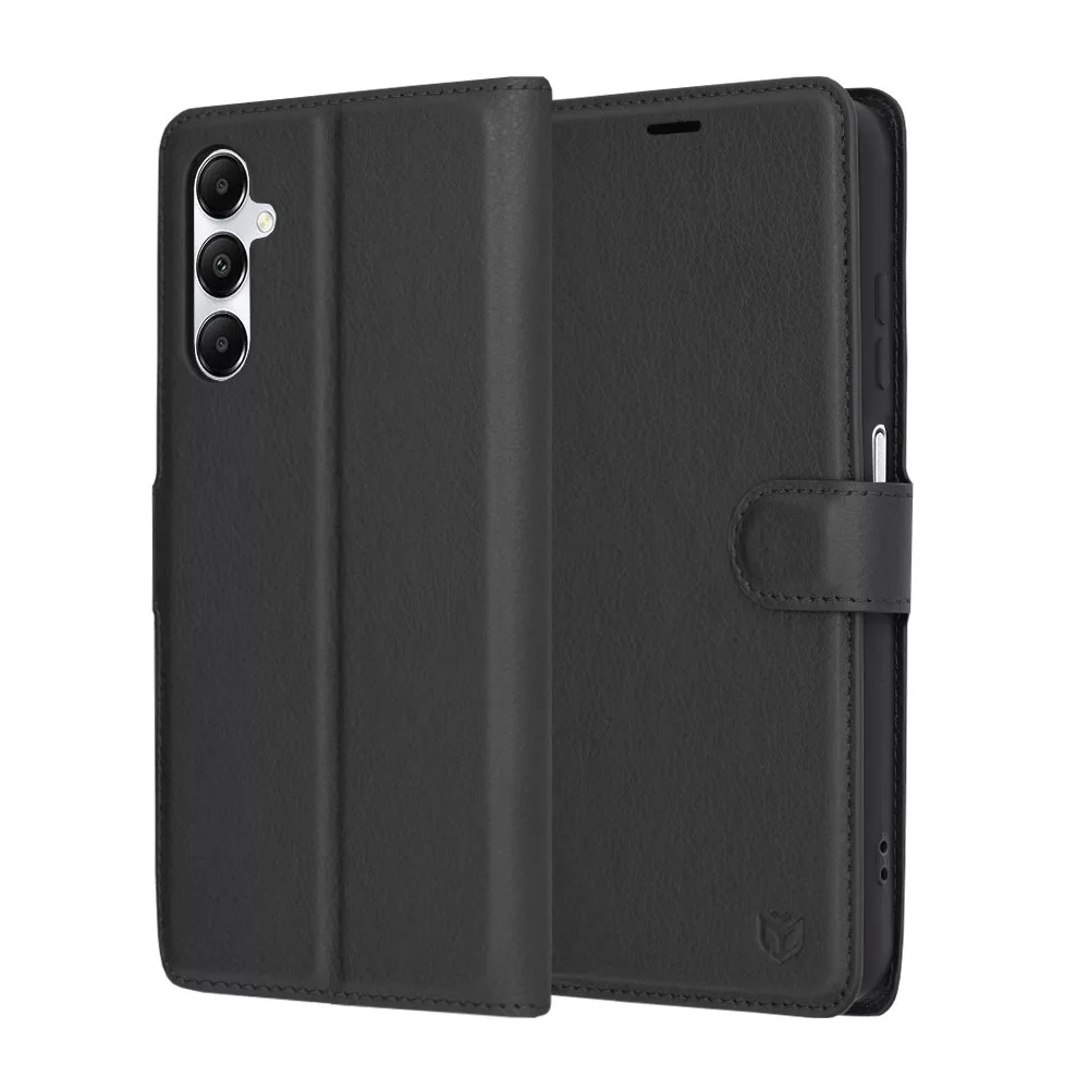OnePlus 12, Kinyitható kártyatartós Ökobőr tok állványfunkcióval - Fekete - Techsuit Leather Folio