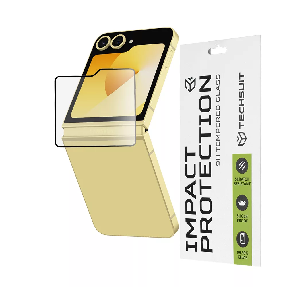 Techsuit - 111D Full Cover / Full Glue üvegfólia [Outside Screen] - Samsung Galaxy Z Flip6 / Flip7 FE - Fekete széllel