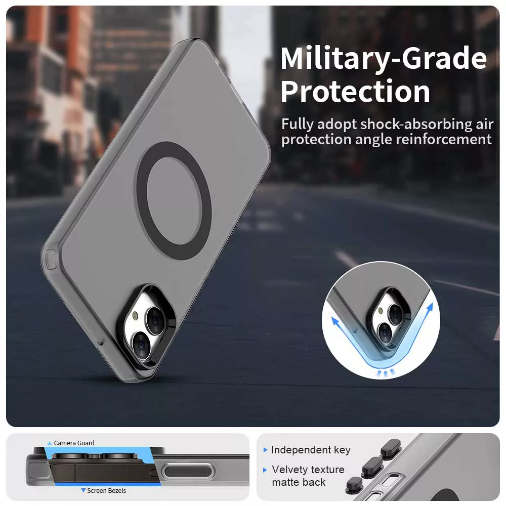 A hátlap MagSafe-kompatibilis kialakítása lehetővé teszi, hogy megfelelő mágneses kiegészítőkkel használd a tokot. A mágneses rögzítés segíthet abban, hogy a telefon stabilabban illeszkedjen az ilyen típusú tartókra vagy töltőkre, miközben a tok a készüléken marad.