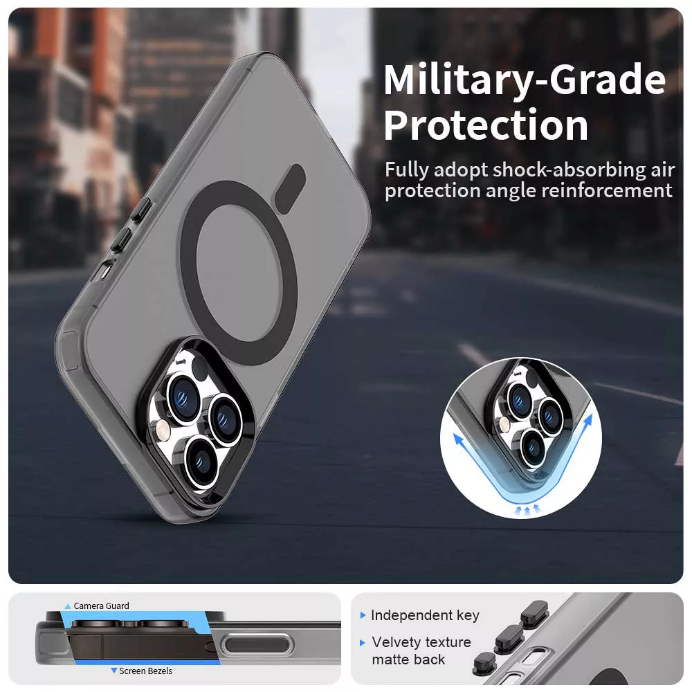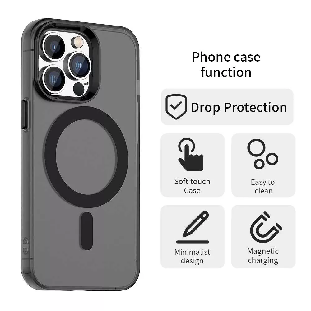 A hátlap MagSafe-kompatibilis kialakítása lehetővé teszi, hogy megfelelő mágneses kiegészítőkkel használd a tokot. A mágneses rögzítés segíthet abban, hogy a telefon stabilabban illeszkedjen az ilyen típusú tartókra vagy töltőkre, miközben a tok a készüléken marad.