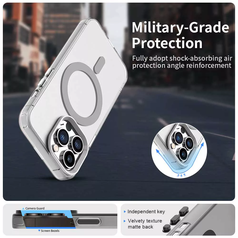 • The corners are reinforced with bumper-type micro-structures, preventing direct shock transmission to the phone body.