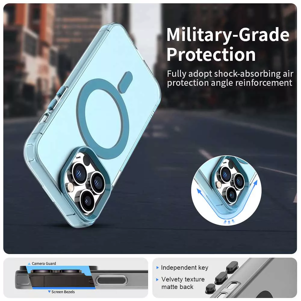 A hátlap MagSafe-kompatibilis kialakítása lehetővé teszi, hogy megfelelő mágneses kiegészítőkkel használd a tokot. A mágneses rögzítés segíthet abban, hogy a telefon stabilabban illeszkedjen az ilyen típusú tartókra vagy töltőkre, miközben a tok a készüléken marad.
