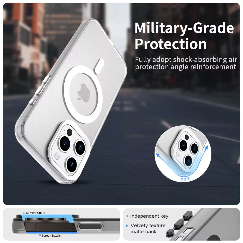 A hátlap MagSafe-kompatibilis kialakítása lehetővé teszi, hogy megfelelő mágneses kiegészítőkkel használd a tokot. A mágneses rögzítés segíthet abban, hogy a telefon stabilabban illeszkedjen az ilyen típusú tartókra vagy töltőkre, miközben a tok a készüléken marad.