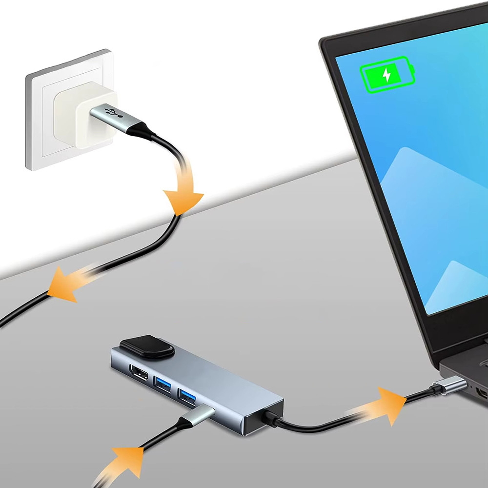 Techsuit - Docking Station NetBridge 5 in 1 (H1) - Type-C to 1x USB2.0, 1x USB3.0, 1x Type-C, 1x HDMI, 1x RJ45, PD87W, 4K@30Hz - Gray