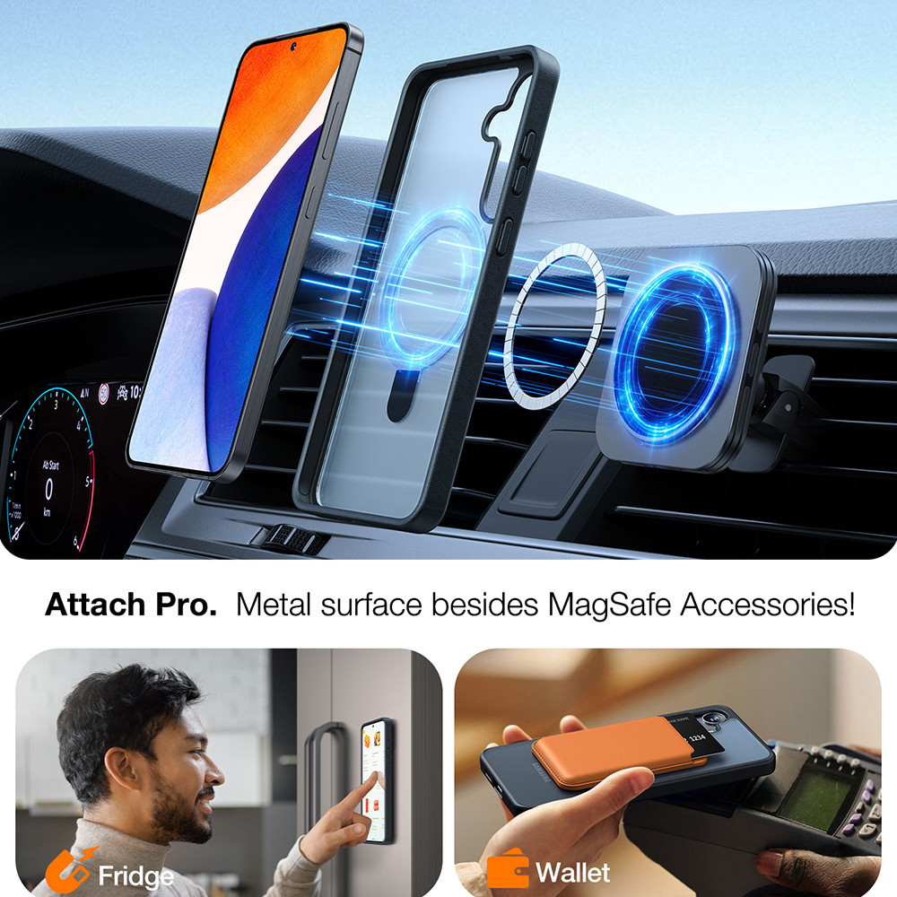 A Torras Ostand MagSafe Series tok MagSafe-kompatibilis, így a beépített mágneses gyűrű segíti a MagSafe töltők és kiegészítők pontos illeszkedését. Ez lehetővé teszi a kényelmes vezeték nélküli töltést és a kompatibilis tartók, pénztárcák vagy autós kiegészítők magabiztos rögzítését.