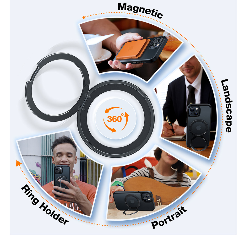 A Torras Ostand MagSafe Series tok MagSafe-kompatibilis, így a beépített mágneses gyűrű segíti a MagSafe töltők és kiegészítők pontos illeszkedését. Ez lehetővé teszi a kényelmes vezeték nélküli töltést és a kompatibilis tartók, pénztárcák vagy autós kiegészítők magabiztos rögzítését.