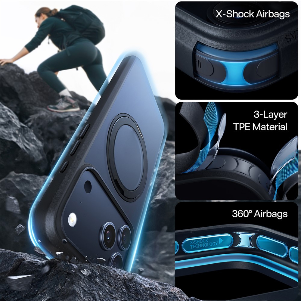 A Torras Ostand MagSafe Series tok MagSafe-kompatibilis, így a beépített mágneses gyűrű segíti a MagSafe töltők és kiegészítők pontos illeszkedését. Ez lehetővé teszi a kényelmes vezeték nélküli töltést és a kompatibilis tartók, pénztárcák vagy autós kiegészítők magabiztos rögzítését.