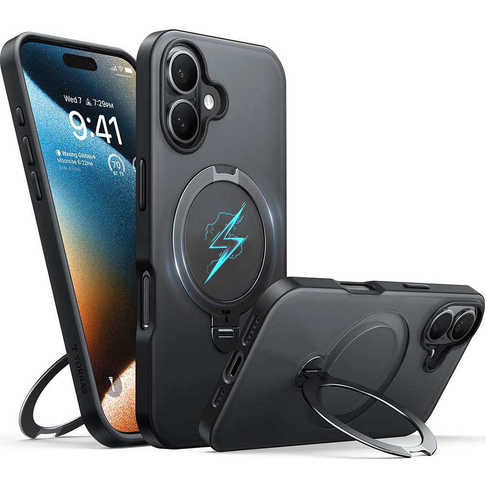 Torras - Ostand Spin MagSafe Series tok - iPhone 16 - Fekete
