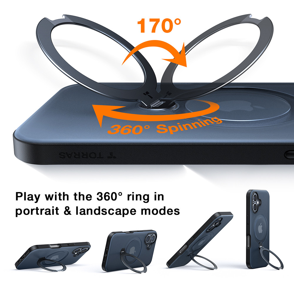 Torras - Ostand Spin MagSafe Series tok - iPhone 16 Plus - Átlátszó