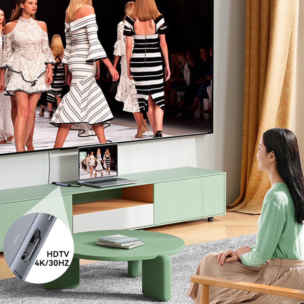 Yesido - Docking Station 8in1 (HB27) - Type-C to 2x USB, 2x USB-C, HDMI, RJ45, TF/SD, PD100W, Fast Charge, 4K@30Hz - Gray