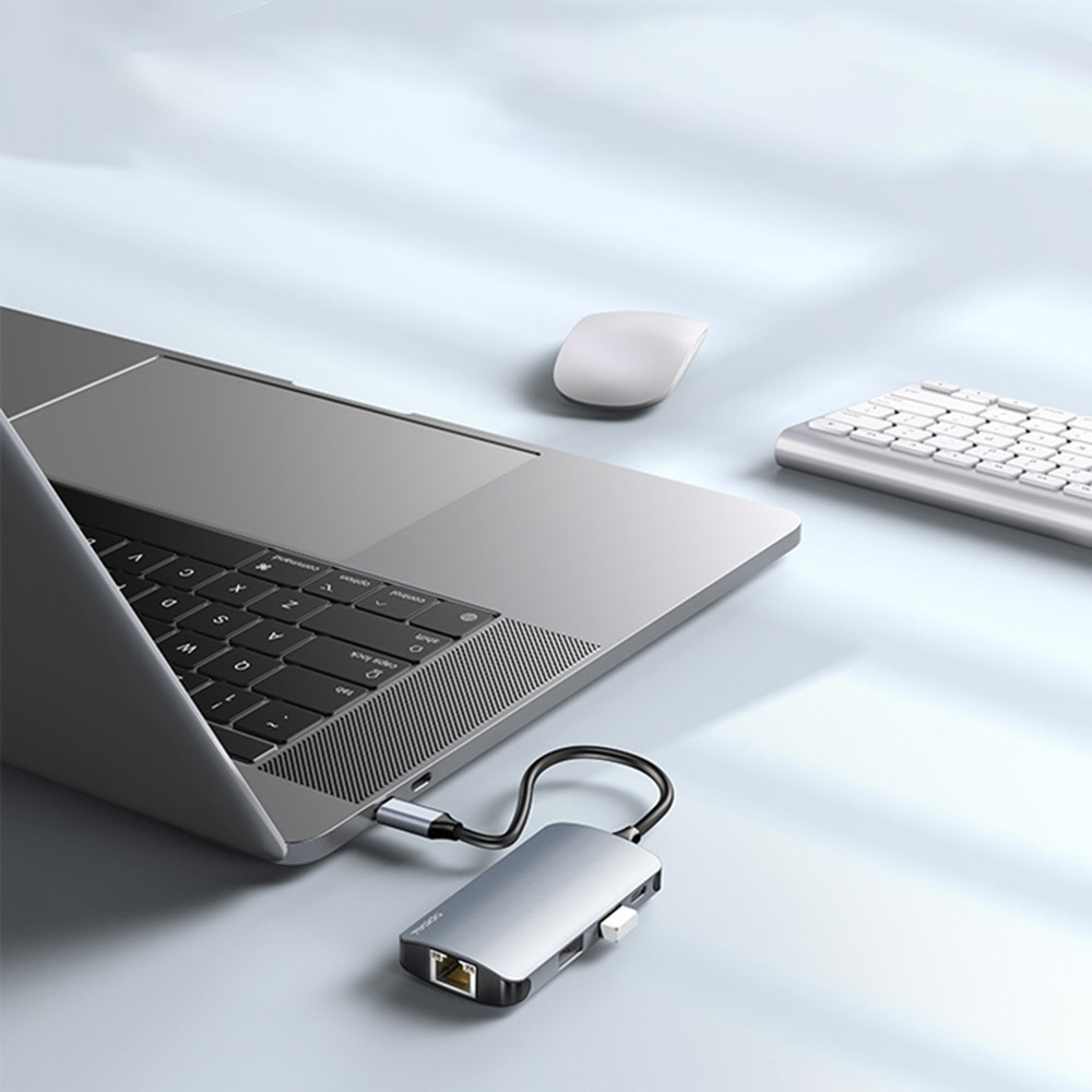 Yesido - Docking Station (HB15) - Type-C to 2x USB, USB-C, SD/TF Card, RJ45, 1000Mbps, Plug & Play - Gray