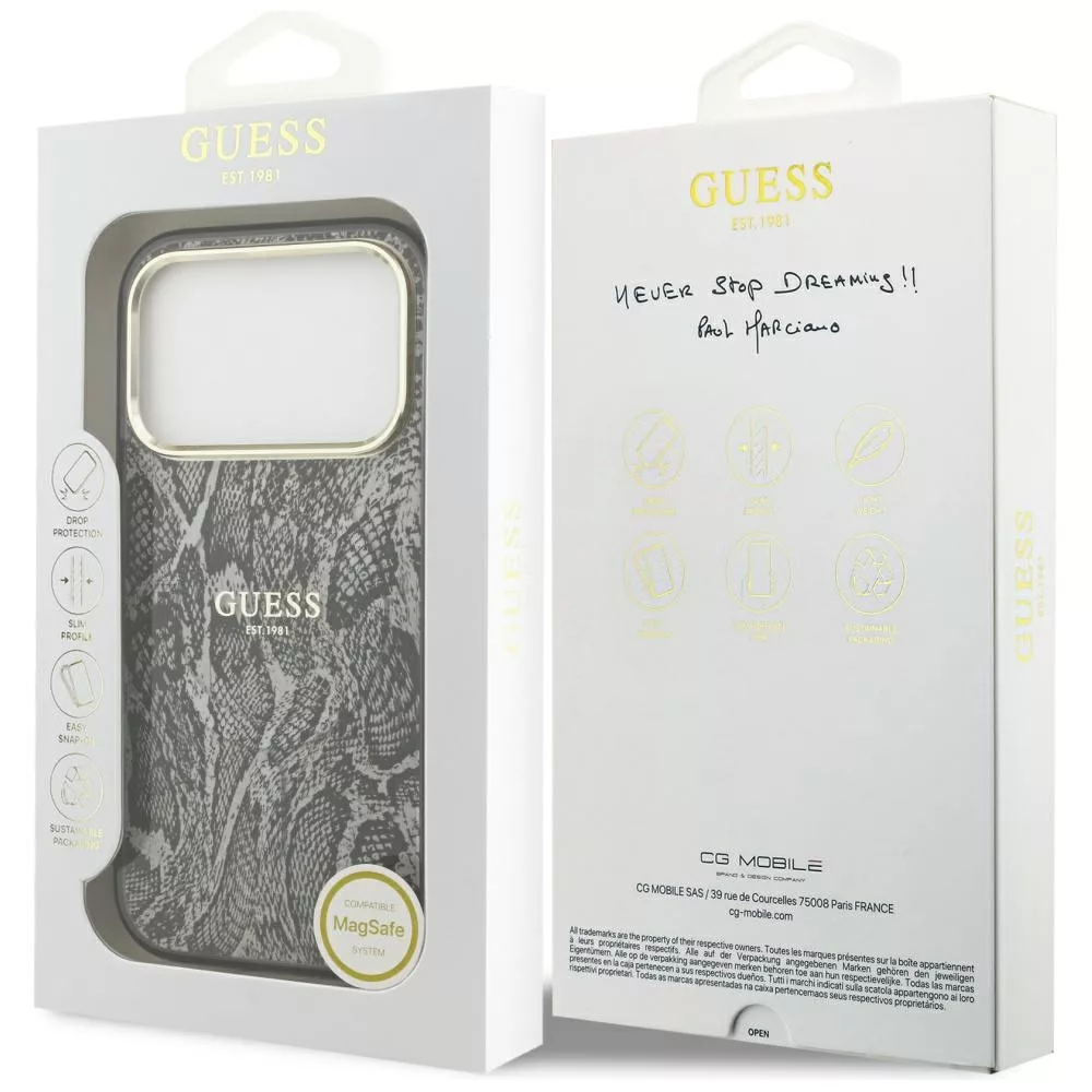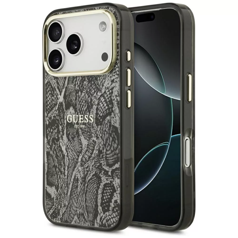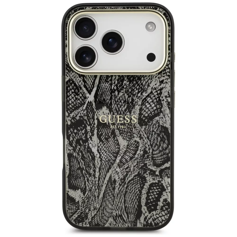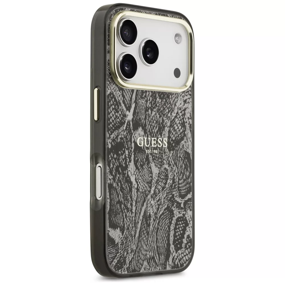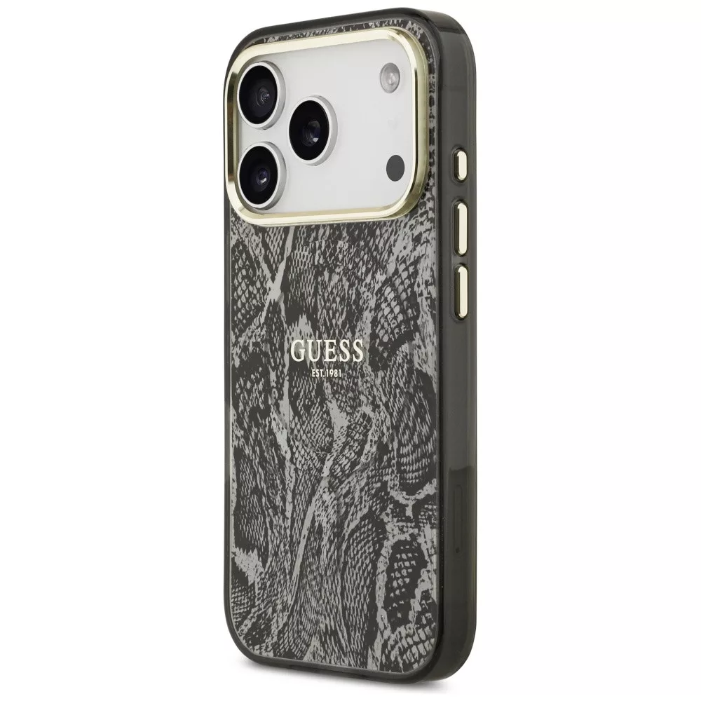 iPhone 17 Pro, Guess - Python Pattern, Kígyó mintás MagSafe tok - Fekete