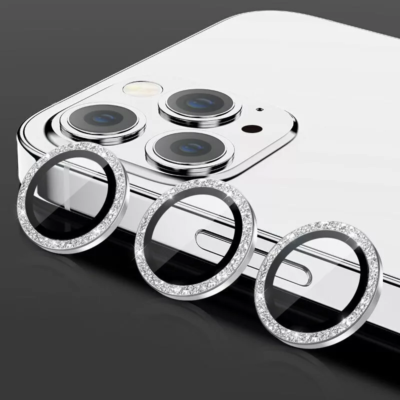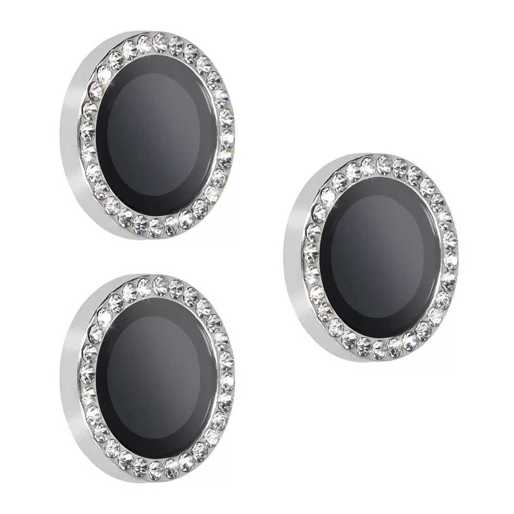 Iphone 17 Pro/17 Pro Max, Csillogós Kameralencse védő edzett üveg, kövekkel (3db) - Ezüst - HARD DIAMOND