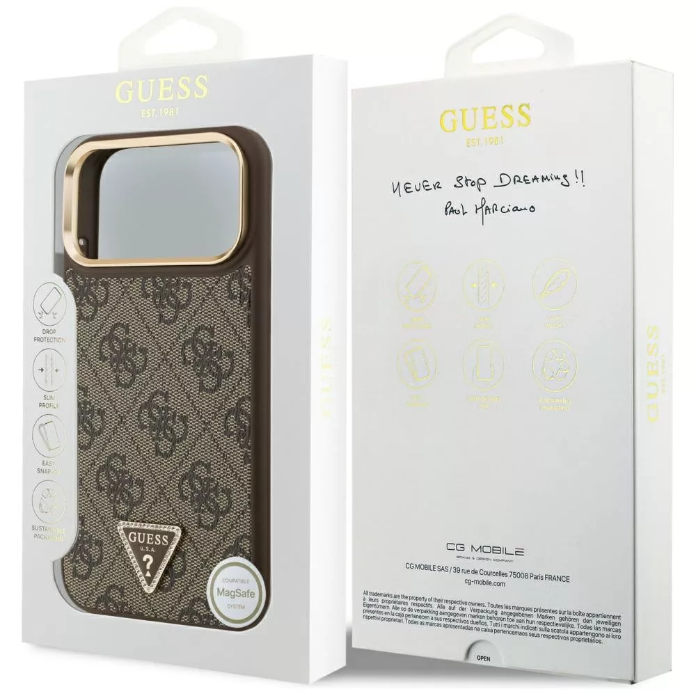 iPhone 17 Pro, Guess - Hardcase 4G Triangle Logo MagSafe tok - Barna