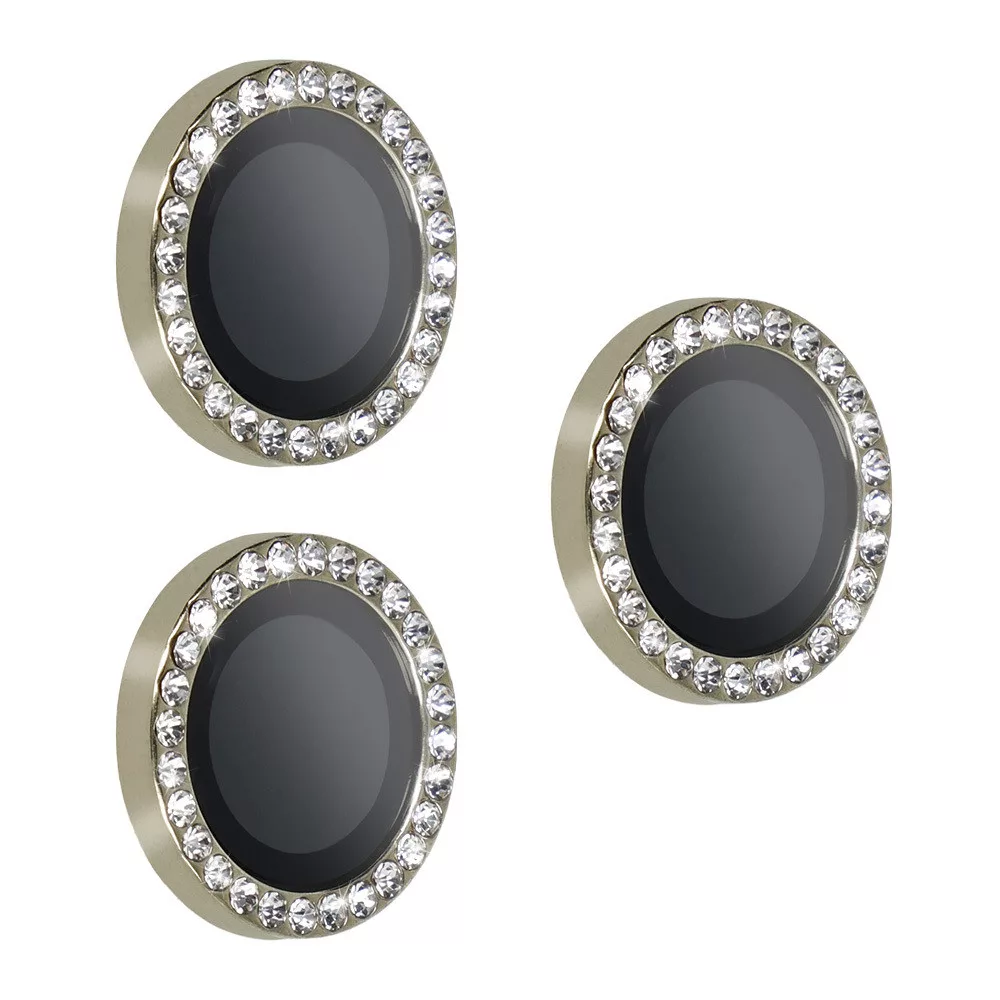 Iphone 17 Pro/17 Pro Max, Csillogós Kameralencse védő edzett üveg, kövekkel (3db) - Titanium - HARD DIAMOND