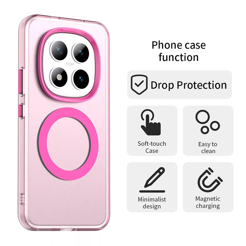 A Techsuit CandyCase MagSafe tok stílusos védelmet nyújt Xiaomi Redmi Note 15 Pro+ 5G és Poco M8 Pro 5G készülékednek. Vékony, mégis masszív kialakítása segít megóvni a telefont a karcoktól és kisebb ütődésektől, miközben a MagSafe-kompatibilis hátlap támogatja a megfelelő mágneses rögzítést megfelelő kiegészítőkkel. A pontos kivágásoknak köszönhetően minden gomb és csatlakozó könnyen elérhető marad.